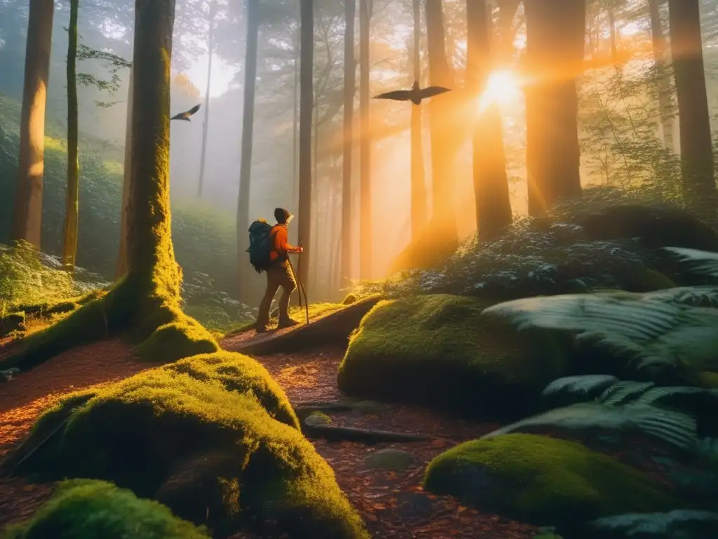 Señales de auxilio en la naturaleza: hiker perdido en bosque misterioso, SOS, señales de distress, naturaleza, ayuda